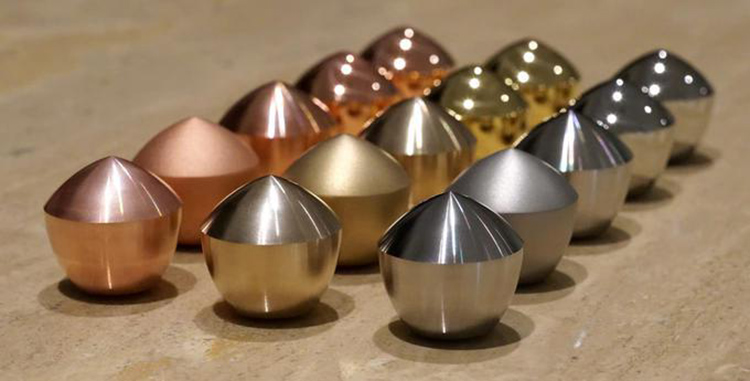 Orbiforms有不锈钢,铜和黄铜。每种金属都是精密CNC(电脑数控)加工,然后用三种表面处理之一进行手工处理。您可以选择缎面,镜面抛光或机器抛光。下面的图片显示了九个不同的选项。