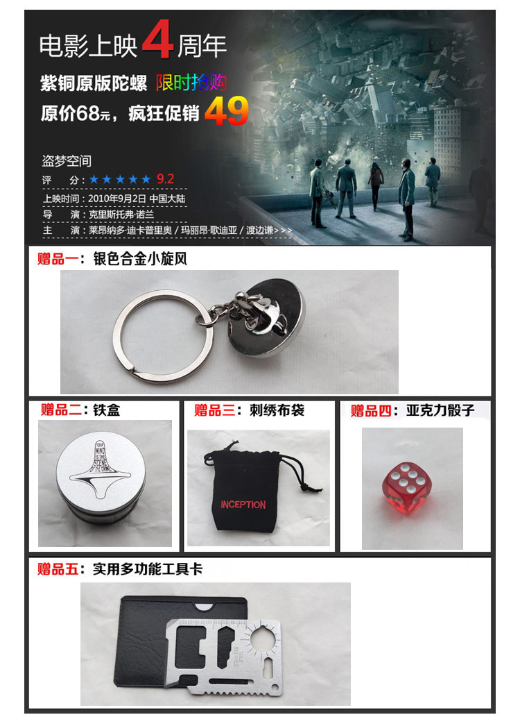 正品盗梦空间陀螺手转动旋转图腾无阻力小旋风金属陀螺收藏送礼品